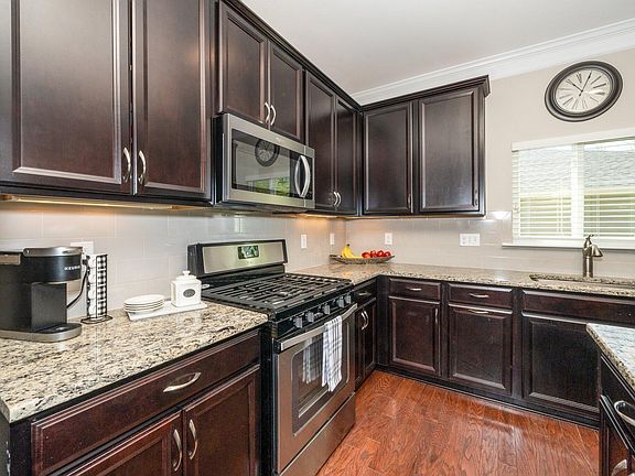 Nestled in the highly sought-after PARTIN PLACE community, this impeccably maintained home offers a perfect blend of sophistication and comfort. As you step inside, you're greeted by a STYLISH INTERIOR featuring sleek black-painted doors and a refined color palette that creates a designer-inspired atmosphere. TRANSOM WINDOWS invite abundant natural light, creating an airy, welcoming ambiance. FRENCH DOORS off the foyer open into a spacious den/office, which can easily serve as a THIRD BEDROOM, offering flexibility for your needs. The heart of the home is the chef-inspired kitchen, complete with rich cabinetry, a 5-BURNER GAS RANGE, granite countertops, spacious pantry, and a large eat-at center island - ideal for both casual meals and entertaining guests. The main living area and primary bedroom boast stunning TRAY CEILINGS that elevate the space, adding an elegant touch. The primary bedroom offers a luxurious retreat, featuring a generous en-suite bath with dual sinks, as well as two large closets for ample storage. Step outside to the recently UPDATED SCREENED PORCH with tiled flooring, where you can enjoy your morning coffee or host gatherings. The private, FULLY-FENCED, wooded backyard is a peaceful oasis, complete with a CUSTOM-DESIGNED PATIO with IRRIGATION system on a PREMIUM LOT! FRESHLY PAINTED throughout, the home is MOVE-IN READY, and with a low quarterly HOA fee that includes access to the COMMUNITY POOL, you'll have everything you need for a relaxed, enjoyable lifestyle. Refrigerator, washer and dryer convey with acceptable offer. Conveniently located near shopping, dining, and entertainment, this stunning home won't last long. Don't miss out - schedule your tour today before it's gone!