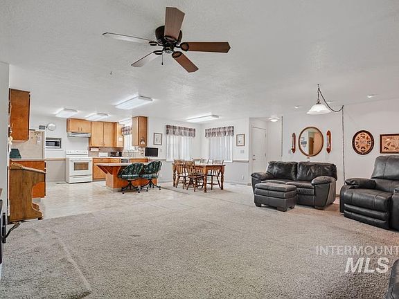 Quiet country living in Arena Valley located between Parma & Wilder. This 3 bed 2 bath home with a den boasts an open floor plan on the main level with potential to add bedroom space in the basement. Downstairs has one finished bedroom with a flex room, a sewing/craft room and a large canning/food storage room. Step outside into a well maintained yard with mature landscaping, a custom built play area for the kids & a huge garden space with strawberry boxes currently in bloom. The main shop boasts a wood working room, an upstairs storage area, and tons of room for any trade. The 2nd shop with a rolling door and electricity is perfect for indoor parking for your toys or RV. At just under 2 acres there is plenty of room to spread out and enjoy your privacy!