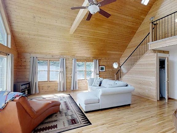 Sunny and bright home with soaring vaulted ceilings,skylights, hardwood floors and a woodsy feel! Located just a few blocks from the ocean and with views of the ocean and Rogue River Bay. Upper bedroom suite with 1/2 bath. Main level also has a bedroom and bath plus a small bedroom/office space. Double car garage, large fenced backyard and plenty of room to park RV/Boats.