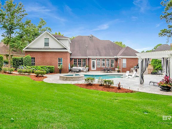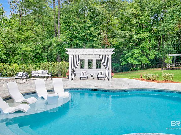 Step into a true masterpiece in the beautiful Timbercreek golf course community located in Spanish Fort, AL. Located at the end of a quiet cul-de-sac and offering almost an acre of property, truly everything in this home has been redone with the finest attention to detail. You'll love the tall ceilings as you enter the foyer and step into the large living room with tons of natural light, overlooking the gorgeous swimming pool, hot tub, outdoor kitchen and cabana. There are so many custom touches that it's hard to list. The kitchen has beautiful cabinets and granite with 5 burner cooktop and wine fridge. The primary bedroom is spacious and has custom wood accents on the walls and leads into a fabulous primary bath with separate shower and garden tub all tiled beautifully. Enjoy the enclosed and climate controlled sun-room overlooking the pool and backyard. The upstairs offers a large bonus room or media room with attached bedroom and totally remodeled full bath. Enjoy plenty of space in the 3 car garage! The completely FENCED in back yard offers rolling hills with no visible neighbors so you can enjoy the peace and quiet. Buyer to verify all information during due diligence.