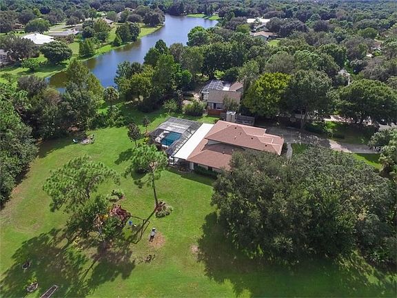 Nestled in the tranquility of Mill Creek, this 4 bedroom, 2 and a half bath home boasts 2,888 square feet of living space on an oversized, 1.15 acre corner lot with lake and wooded views. You are welcomed into the home through the large open foyer. Downstairs includes a den/office with French doors. The kitchen, with island seating and stainless steel appliances, overlooks the pool area and the living room which boasts a fire place, surround sound speakers, and plantation shutters. Through the pocket sliding glass doors is the large screened pool area. Perfect for entertaining. The salt water pool has fountains, sprayers, an umbrella stand in the walk out, and therapy jets. Plenty of storage with the home's 3 car garage and fenced in area for boat or RV parking. These and many other features make this home a must see.