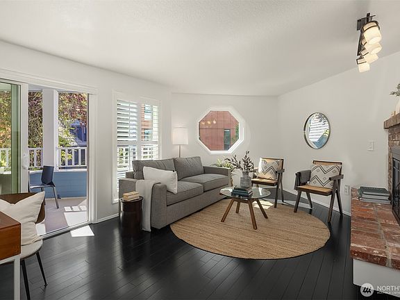 Spacious 2BD/2BA condo in the boutique Victoria House, set on a quiet tree-lined street in Capitol Hill. This well-maintained building features brand-new siding and windows—perfect timing for the new homeowner. Enjoy comfortable living inside the thoughtfully designed unit, featuring a cozy wood-burning fireplace, a charming octagon window, and 2 sets of glass doors opening to a private covered deck—ideal for your bbq or morning coffee. The primary bedroom includes an ensuite bath and walk-in closet with built-in organizers. In-unit laundry, garage parking, large storage unit, and bike storage. No rental cap. Pet friendly. Just blocks to light rail, restaurants, shops, and Volunteer Park. The ideal blend of tranquility and city convenience.