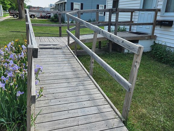 Charming bungalow on a large 80x100 lot. Kitchen, dining and living room with two bedrooms and full bath on main floor. Lower level has 2 egress windows with one bedroom and partial bath. Lots of big ticket updates such as furnace, AC, hot water heater, electrical panel. Vinyl siding and windows. Wheelchair ramp into front door. Fully fenced backyard with a small garden shed and a 1 stall detached garage. This home has been well loved for the last 40+ years by the same family.