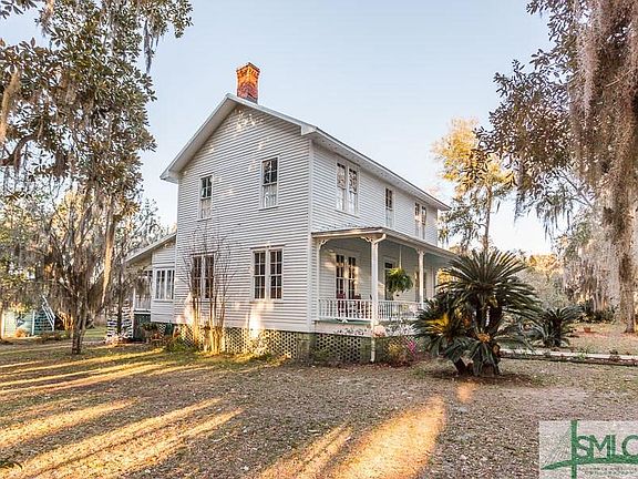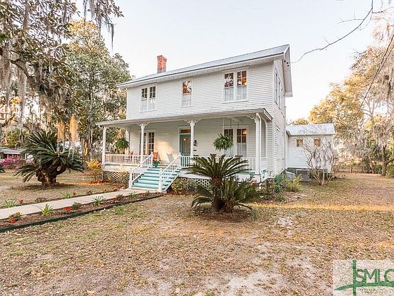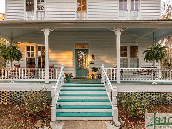 The Sago Palm House, circa 1875, has graced Historic Downtown Darien for more than a century beneath moss-draped live oaks on a generous half-acre home site. An Inn for travelers in her past life, 3 oversized bedrooms w/ private baths & a separate 32x28 outbuilding (896 sq ft) w/ plumbing & electricity allow gracious accommodations or easy conversion to Bed & Breakfast. Welcoming front veranda enters grand center-hall w/ sweeping staircase, dramatic parlor w/ handsome marble-surround fireplace & elegant mantel, charming light-filled sunroom, formal dining room, cheerful farmhouse kitchen w/ sunny breakfast room, half bath & laundry complete the main level along with owner's suite & private bath, two additional bedrooms suites upstairs. Lovingly restored by current owners of 25+ years w/ beautiful original hardwood floors & extensive moldings, antique hardware & light fixtures, updated systems & roof, renovated to the studs w/ additional insulation for comfort. A rare, special offering!