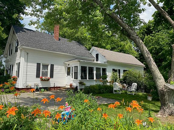 Charming New Englander in the heart of Waterville. Sunny porch, formal dining room and living room. 2-3 bedrooms. Room for expansion in three story attached shed. Double lot with three bay garage, zoned Residential with high visibility.
