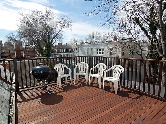 Available now! Light-filled Cambridgeport 3 bedroom, 2 bath condo with beautiful pine floors throughout. Two floors of living space with renovated kitchen, imported italian granite countertops and top of the line appliances. Tall ceilings with huge skylight and a private roof deck overlooking a quiet street. Freshly painted throughout, and storage and laundry in the basement. Easy street parking with Cambridge residence permit. Flexible layout with extra rooms for study/office. Strong income, credit, references required.