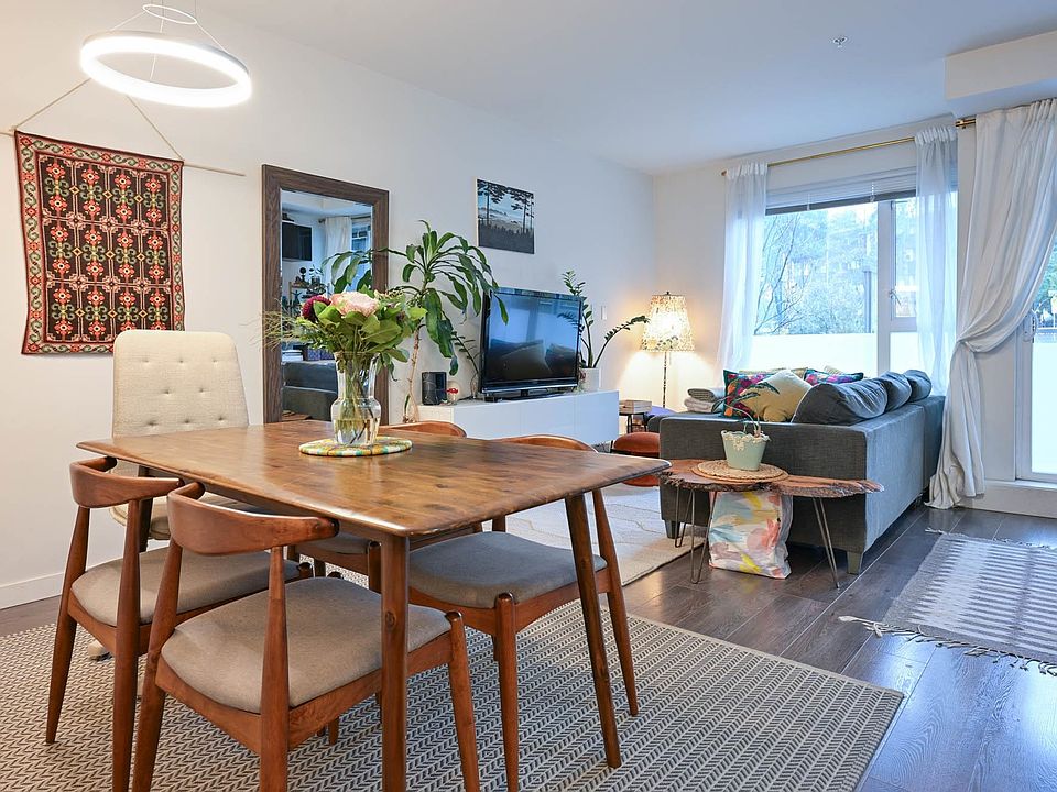 Desirable, open concept floor plan at Canvas by Onni. This layout offers 2 exposures with South and North windows, a highly functional space with an open concept living, dining and kitchen area. The bedroom is tucked in the quietest part of the home, away from any streets or external noise and parking and storage locker are also included. Canvas is located in the False Creek flats, right next to the upcoming Emily Carr Skytrain station and close proximity to Mt Pleasant & The Olympic Village. Amenities include a well equipped gym, central courtyard, party room, workshop and bike storage. First Open House Sunday Nov 24th; 2-4pm.