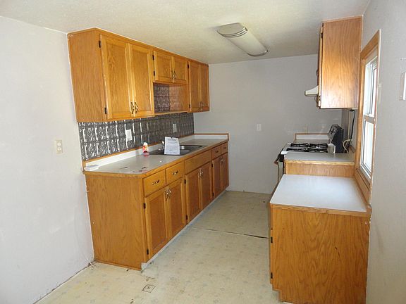 Huge lot and a double garage that is plumbed for a heater, has electrical and 2 separate garage doors. Yard shed with an overhead door. The house has an eat in kitchen, large living room and a good sized bedroom with 2 closets and a full bath. The basement has a big laundry room, family room, non conforming bedroom, 3/4 bath and storage. Needs some TLC but would be well worth it.