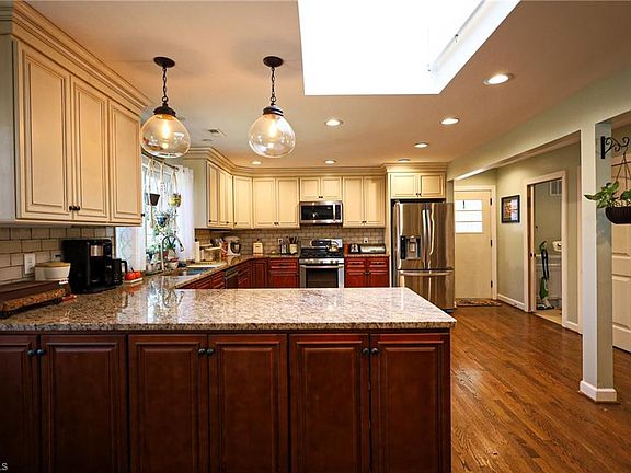 ASK ABOUT LENDER CREDIT! Renovated brick ranch with second living quarters in the finished basement. Updates include refinished hardwoods upstairs, LVP flooring downstairs, dual Train HVAC and furnace systems, double pane windows, tankless water heater, and reconfiguration of the main living area to create the open concept living space with the addition of a walk in laundry. The kitchen upstairs boasts ample cabinetry, granite countertops, stainless steel appliances, a gas cooktop, and walk in pantry. Downstairs offers a second living space including, a full kitchen with dining area, bathroom, bedroom with massive walk-in closet, den, office area, and second laundry room. This space is perfect as an in-law suite, guest house, pool house, or income-producing apartment. Looking for storage? This house has it! There are several spacious, easy access storage areas throughout the home. Outside you will enjoy the fenced yard oasis while by the saltwater pool or enjoying the back deck.