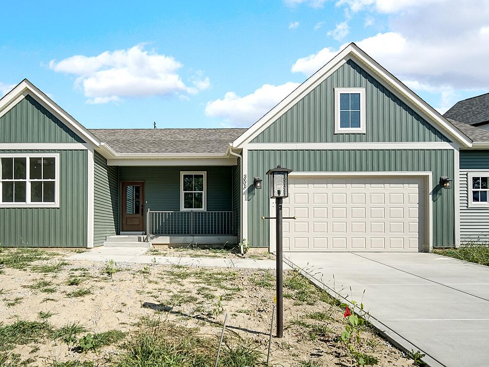 Welcome to the Morgan, a thoughtfully designed 2,053 sq. ft. ranch-style home in the desirable Cherry Hill community. This open-concept plan features 3 spacious bedrooms, 2 full baths, and a versatile flex room--perfect for a home office or den. The heart of the home offers a gourmet kitchen with center island, walk-in pantry, and seamless flow into the dining and living areas, complete with a cozy fireplace. A vaulted sunroom adds natural light and year-round enjoyment. The primary suite impresses with an oversized vanity, tiled walk-in shower, and large walk-in closet. Additional highlights include a mudroom with built-ins, main floor laundry, covered front porch, and a full unfinished basement with endless potential. A 2.5-car garage provides ample storage. Located at 303 Apple Grove Lane, this new construction home offers both comfort and style in a sought-after Valparaiso neighborhood.
