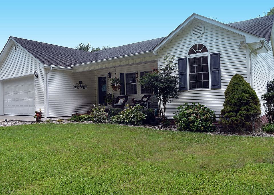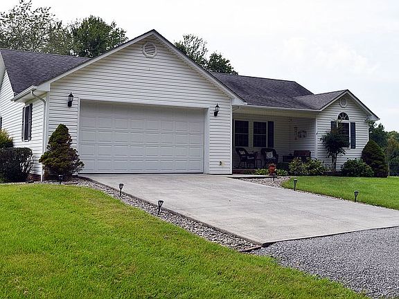 This beautiful well-maintained home sits on 1.2 semi-wooded acres in a quiet, friendly neighborhood about 2 miles from town in Russell Springs. On the ground level, the master bedroom has 2 walk-in closets and a vaulted ceiling. The master bathroom has a separate shower, large bathtub with jets, and dual vanities. The kitchen, dining room and breakfast area share a large open space. The 2 smaller bedrooms (one with vaulted ceiling) are divided by a full bathroom with tub/shower combo. There is a 2-car garage with a single door. In the finished basement, there is a spacious living room with bookcases/cabinets and a gas fireplace. Also downstairs is a partial kitchen with bar sink, 2 office spaces, a full bathroom, and a 4th bedroom. The basement also contains a large walk-in storage closet, as well as a 2nd garage. This smaller basement garage is perfect for storing mowing/lawn equipment and/or using it as a workshop. Overlooking the back yard is a large deck with a spacious concrete area and fire pit below. There is also an outside storage shed included.