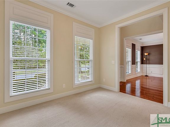 Nestled in the desirable Dasher's Landing, this stately custom designed residence offers comfort and elegance. The front porch is perfect for rocking chairs and enjoying the tranquility of the quiet neighborhood. From the moment you enter into the two-story foyer, you will be greeted by custom woodwork, spacious living room with soaring ceilings, versatile den/office, and formal dining with adjacent butler’s pantry. The kitchen features a lovely breakfast nook, fabulous island and granite countertops. Main floor primary suite with double tray ceiling, sophisticated bathroom and generous closet. Upstairs has a second primary suite and three additional bedrooms. This home was thoughtfully designed with ample storage and two car garage with workspace.