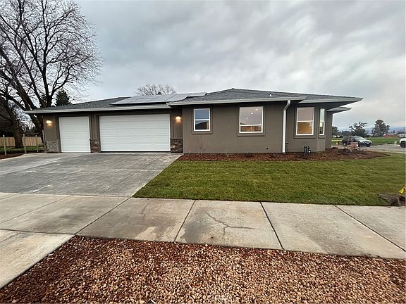 Welcome to your new Bill Webb home, Plan 540, a spacious single-story corner lot floorplan spanning 2045 square feet. This thoughtfully designed home is under construction with a completion date of April! This home comes on a large lot, owned 3.60kW solar system, and enough room for RV parking. Upon entering, you are greeted by a welcoming covered porch leading into a bright entryway. The open concept living space includes a family room with cathedral ceiling, and a separate living room with 11' ceilings and large windows! The kitchen is designed for both the avid cook and those who love to host. Featuring stainless steel appliances, plenty of cabinet space, and ample counter space, it seamlessly flows into the generously sized dining area, ensuring meals, or studying, are both enjoyable and spacious. The primary bedroom offers a private retreat with a walk-in closet, providing ample storage and personal space, as well as a private exit to the large covered patio. Bedrooms #2 and #3 are well-sized for family members or guests, each offering comfort and privacy. A practical laundry room with sink is conveniently located near the kitchen, making household chores less of a hassle. The home also features a three-car garage (22' x 32') for your vehicles and additional storage. Come join our newest community in Chico of thoughtfully designed homes, that will eventually consist of a 1 acre community park, and bike path!