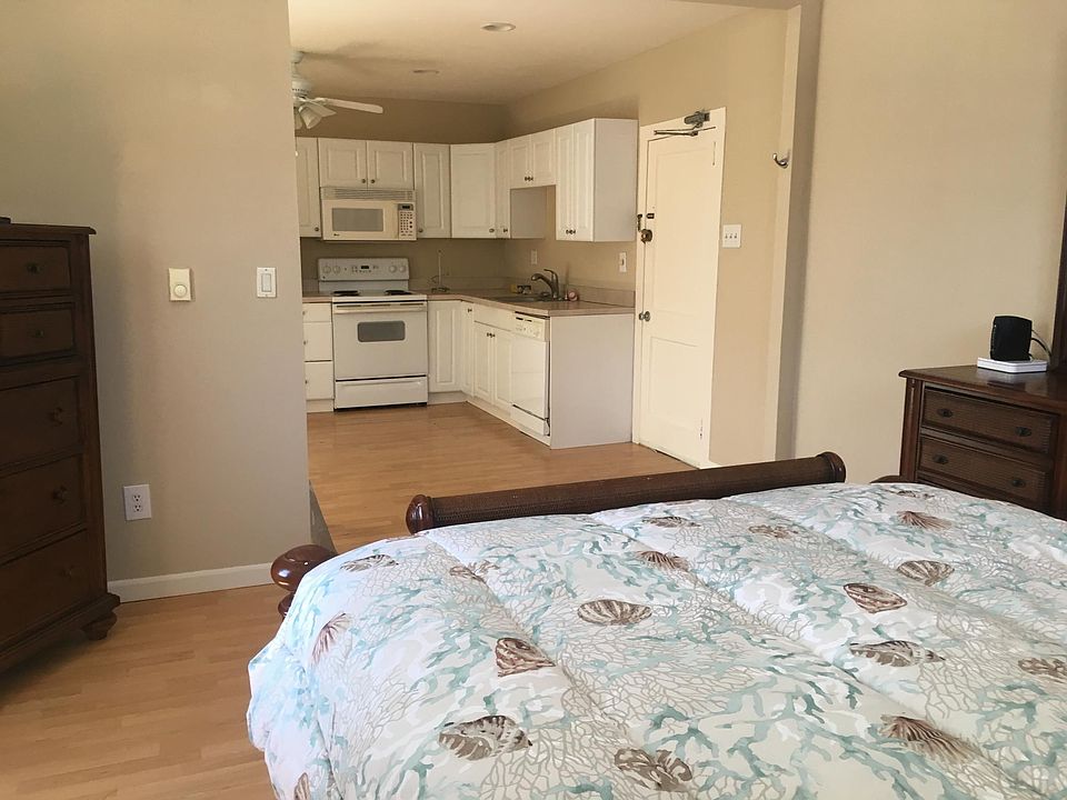 Centrally located Partially furnished large studio. Close to beach. 1st floor with private deck. Cable, Internet and heat included.