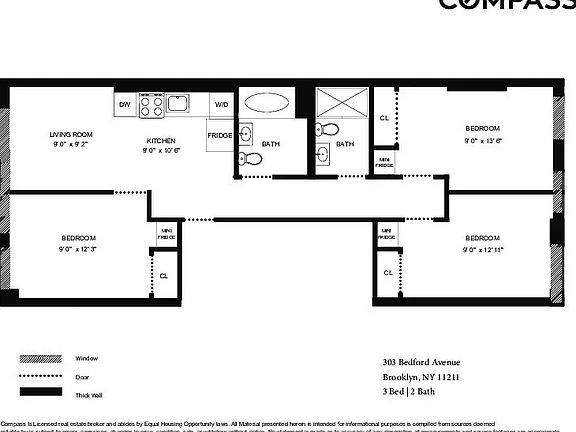 Beautifully renovated three bedroom, two bathroom with washer/dryer in prime Williamsburg! Welcome to this renovated full-floor apartment that was designed with New Yorkers in mind! Each bedroom is like it's own mini-suite, and includes a dry bar with mini-fridge in addition to the spacious built-out closet, and room for a queen-sized bed and home office set-up. The living room and kitchen is roomy and stylish, with 10+ ft ceilings and white oak flooring, black cabinetry and a super cool retro black refrigerator, integrated dishwasher and a combo washer/dryer. Brass fixtures round out these stylish kitchens. The bathrooms are equally luxurious with lovely tile work, brass fixtures, and a soaking tub in one and glass enclosed shower in the other. Last but not least, the closets each have organizers within, and all light fixtures have been sourced from the female-owned company Cedar & Mos. The building is equipped with a Latch entry system that conveniently allows you to control the front door through your phone. Enjoy living in the heart of Williamsburg, you're right in the center of it all the trendiest bars, restaurants and nightlife; DuMont Burgers, Fresh Kills, L'Industrie Pizzeria, Devocion coffee shop and Trader Joe's are all in within easy reach. Conveniently location with easy access to Manhattan close to the J, M and Z lines at Marcy Avenue and the L train at Bedford Ave. McCarren and Domino Park are all close by. *Application fee is $20 per applicant*
