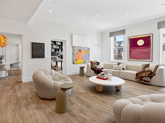 Exquisite 2+ bedroom, 2.5 bath with concierge, direct elevator access & garage parking! This mint condition home underwent a complete renovation in 2021 and has been expertly designed and finished with top-quality materials and craftsmanship. With nearly 2,000 sq ft of luxury living space by secure direct elevator access, this home offers a formal foyer with powder room and entryway closet. Designed with an open concept in mind, this modern transitional space has neutral hardwood floors, tall ceiling heights, oversized windows and defined living areas. An ideal layout offers a top-of-the-line eat-in kitchen with oversized island and breakfast bar, abundant storage and stone counters. The comfortable family room is adjacent to the kitchen and offers views of famous Beacon Street, large sun-inviting windows and a marble mantel gas fireplace. A kingsize primary suite has a beautiful south facing bay window, ample closet space including a walk-in, and a chic marble bath with radiant heat.