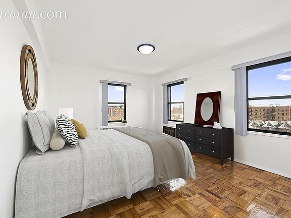 Offer Accepted. 303 Beverley Road #7A is a sprawling two bedroom with windowed home office and one and a half bathrooms, spanning over 1300 square feet! Located in one of Kensington's most desirable full service buildings, this move-in ready home offers a huge living room with views that overlook Brownstone Brooklyn and the Manhattan skyline, a formal dining room and a windowed kitchen with breakfast nook! This delicious, bright apartment has three exposures, twelve windows, six closets, and beautifully refinished parquet flooring throughout. The spacious corner master bedroom features a cedar-lined walk-in closet as well as a half bath. This well maintained elevator coop has strong financials, a 24 hour doorman, on-site management, laundry, bike storage, and a parking garage (waitlist). Located in Kensington, you're just a short distance to the F/G trains at Church Avenue and near fantastic local amenities like the Brooklyn Public Library, Bar Chord, The Albemarle Playground, Foodtown, Asia Harbor Bistro, La Loba Cantina, Brancaccio's Food Shop, and other local destinations! Cat friendly, sorry - no dogs.