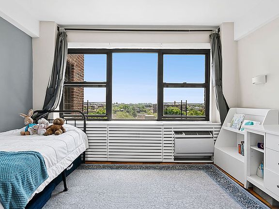 Discover spectacular space, abundant storage, and breathtaking views in this legal one-bedroom unit currently converted to a roomy two-bedroom, one-bathroom home nestled within a full-service postwar Kensington cooperative. Inside this expansive, turnkey residence, you'll be swept away by tall ceilings, hardwood floors and wide-open southern views that seem to stretch on forever. The gracious foyer is surrounded by two huge closets, nodding to the excellent storage found throughout the home. The open-plan living/dining room provides a generous footprint for lavish entertaining and comfortable daily life. Head to the updated kitchen to find custom wood cabinetry, True Silestone Quartz countertops and stainless steel appliances, including a gas range, bottom-freezer refrigerator, dishwasher and built-in microwave. Sleep soundly in the sprawling primary bedroom, where you'll find southern and western exposures, a walk-in closet and plenty of room for a sitting area or fitness space. Off the living room, French doors open to a flex room, which is ideal as a guest room, nursery, or private home office. A lovely full bathroom with an extra deep tub/shower, floating vanity, medicine cabinet and floor-to-ceiling tile completes this high-floor Brooklyn haven. 303 Beverley Road is a handsome brick cooperative where residents enjoy full-time doorman/concierge assistance, onsite management and superintendent service, a package room, laundry, bike storage, a lending library, a green committee and a parking garage (currently waitlisted). Cats allowed. Sorry, no dogs. From this lovely tree-lined location near the intersection of Prospect Park South and Kensington, you'll enjoy a wonderful residential quality of life with easy access to fantastic local shopping, dining and nightlife. Prospect Park, and the Parade Grounds are just six blocks away. You'll find a wealth of local shops, restaurants and nightlife venues on the nearby streets, while only 5 minutes to the F, G, B and Q trains, excellent bus service and CitiBikes put the rest of the city within easy reach.