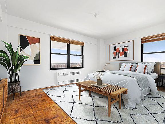 Residence 7H at 303 Beverley Road is a spacious 2-bedroom, 2-bathroom home featuring multiple sunny exposures, a large private balcony and exceptionally low monthlies. The home’s main living space is a blank slate – open concept with a windowed galley kitchen and an enormous living space featuring a corner window with open treetop views over Brooklyn. The master bedroom is grand in scale and located just off the living area; it offers a generous walk-in closet and en-suite bath. A roomy second bedroom, located directly across from the second bath, is located toward the other end of the home. 303 Beverley Road is a full service elevator building moments from the F, G and Q trains and nestled near the lush oasis of Prospect Park. The building offers residents a 24-hour doorman, laundry room and bike storage.