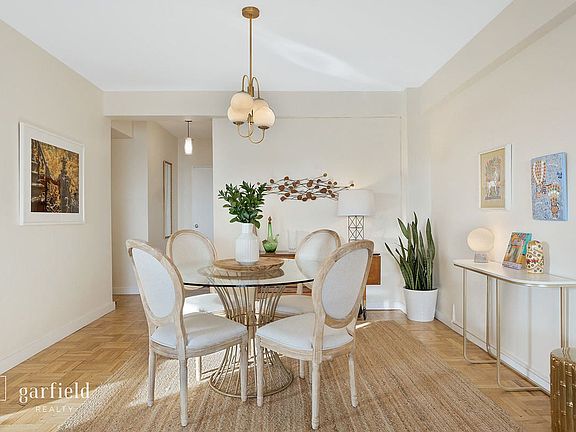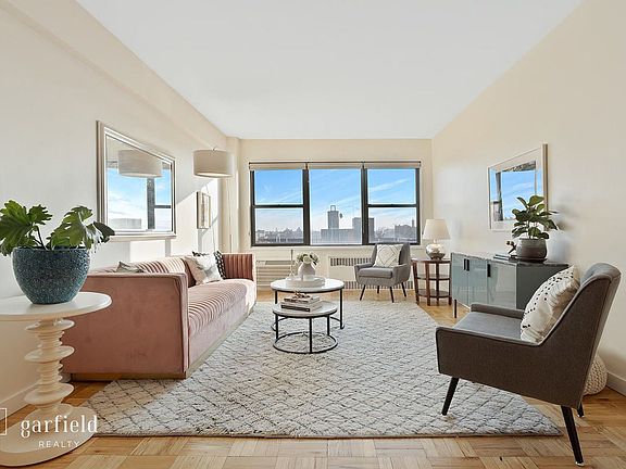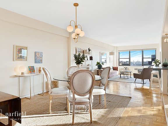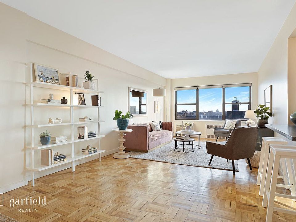This beautiful, sprawling, sun-filled 2BR is perched on a high floor in a coveted elevator/doorman building. A comfortable, open layout is illuminated by large corner windows with sweeping sunset views, and each well-proportioned room is bathed in sunlight. A bright and airy living room and dining room abuts a large open kitchen with abundant storage and counter space, including a breakfast bar. Both bedrooms in this thoughtfully designed home are large and tranquil. The primary bedroom accommodates a king-sized bed and ample furniture. Additional features include AC sleeves in the living room and both bedrooms, an updated bathroom off the hallway, new designer light fixtures, and incredible closet space with multiple enormous walk-ins. This cat-friendly building offers full-time doorman/concierge service, an onsite management company, onsite super, a well-maintained laundry room, basement bike storage, and a parking garage (currently wait-listed). Located in the sweet spot of Kensington between East 3rd and East 4th Streets, within steps of transportation--a 2-minute walk to the F/G at Church Avenue. An array of shops and services, Prospect Park, the Brooklyn Public Library, Greenwood Playground, Brancaccio's Food Shop, Steeplechase Coffee, Church Cafe Wine Bar, Sake Sushi, Farm on Adderley, and more are just a short walk away. Enjoy biking, rollerblading, or walking along Ocean Parkway's promenade, and in just 15 minutes you can experience Coney Island and Brighton beaches and boardwalks. This is an amazing place to call home.