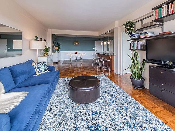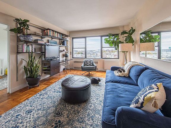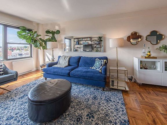 The home of your dreams awaits! This super-sized, sun-filled 2BR is perched on a high floor in a coveted full-service, elevator/doorman building. A comfortable, bright, and open layout is illuminated by large windows with sweeping westward views towards the Verrazano and beyond. Each room is bathed in sunlight, and you can watch picture-perfect sunsets every evening. This well-proportioned, airy home boasts high ceilings, original parquet floors, and an open layout perfect for living and entertaining. The renovated open kitchen offers abundant storage, counter space including a breakfast counter, stainless appliances including a dishwasher and microwave, granite countertops, hardwood cabinets and slate floors. The large dining area can easily fit a table for eight, and conversation can easily flow between the dining area, kitchen, and living room. The oversized master bedroom can comfortably fit a king-sized bed and ample furniture, and the second bright bedroom can fit a queen-sized bed. Custom-built window treatments offer shade and blackout coverage in each room. Elfa systems offer seamless organizing possibilities. The bathroom is updated and sparkling clean. There is incredibly abundant closet space, including a large pantry off the kitchen and multiple walk-ins. This cat-friendly building offers full-time doorman/concierge service, an onsite management company, a well-maintained laundry room, a package room, secure bike storage in the basement, and a parking garage (currently wait listed). The same superintendent has lived onsite and has served the building for years. Active resident-run committees coordinate a community lending library in the basement, textile and electronics recycling, composting, and events like building-coordinated trick-or-treating for the residents. Located in the sweet spot of Kensington between East 3rd and East 4th Streets, within steps of transportation (a 2-minute walk to the F/G at Church Avenue), surrounded by an array of shops and services, Prospect Park, the Brooklyn Public Library, and Greenwood Playground. Dining options such as Brancaccio’s Food Shop, Steeplechase Coffee, Angelica’s Diner, Thai Farm to Table, Kabir’s Bakery, Der Pioneer, Wheated, Hunger Pang, Werkstatt, Hinterlands, La Loba Cantina, Sake Sushi, and more, are just a short walk away. Two 24-hour grocery stores are within one block of the building: Isaac Apple Farm and Carnival. Enjoy biking, rollerblading, or walking along Ocean Parkway’s promenade, and in just 15-minutes, you can experience Coney Island and Brighton beaches and boardwalks. This is an amazing place to call home!