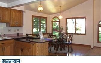 Bigger Than It Looks! New Price! Great expanded Split Level on nicely landscaped corner property. Wonderful step down Family Room addition with cathedral ceiling, stone fireplace, and door to large Deck. Bright Breakfast Room addition with wrap around windows. Redone Kitchen with wood cabinets, Peninsula for serving, and newer appliances. Three Bedrooms and tile Bath on main Bedroom level. Separate Master Suite on top level. Lots of closet space. Lower level has a second Family Room or Home Office, Laundry Room, Powder Room, and doors to Yard and 1 car Garage. Wonderful neighborhood close to train and schools. One year home warranty! Don't miss it!