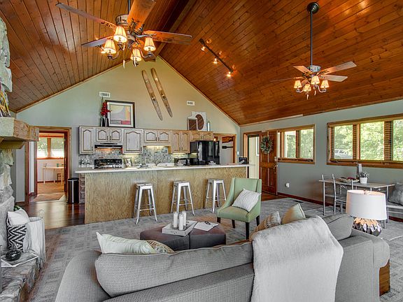 Custom built, spacious home overlooking Center Hill Lake. House has been well maintained and has large open living areas, kitchen, stone fireplace, 3 bdr, 2 bth, bunk room, screened porch, garage. Also includes extra lot to ensure your privacy.