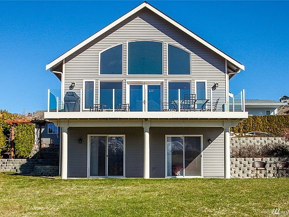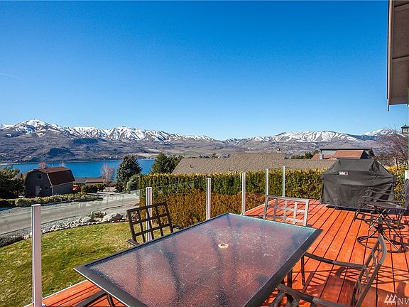 Immaculate Chelan Hills community waterfront home with big views and inviting open floor plan. Double doors to a new deck overlooking the spacious lawn area on 1/4 of an acre. Spacious master bedroom and bath with a walk in closet. Loft area for home office space with a new half bath. Daylight basement features two bedrooms accessible to patio, an entertainment room and laundry room. An oversized 2 car finished garage with additional off street parking and a garden shed provide plenty of storage