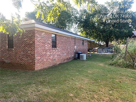 Charming 3 bedroom, 2 bath brick home with NEW roof and Fresh exterior paint. Front deck to enjoy the evenings and attached carport for parking. Additional RV Covered Carport and 16'x24' hobby workshop with electric. A two car covered parking is attached to the workshop for vehicles or boats. Additional storage building on the property. Just minutes away from Wister Lake.