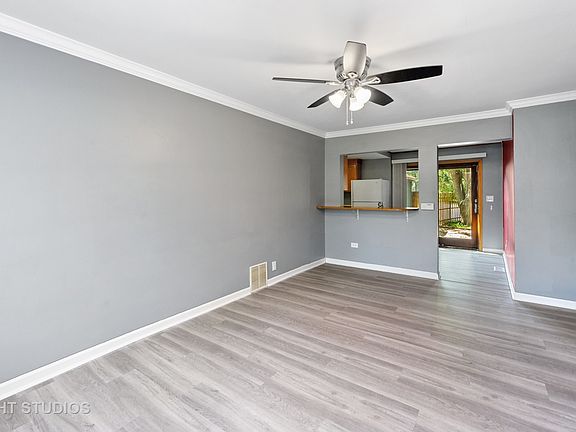 LOCATION, LOCATION, LOCATION. Come see this HIGHLY AFFORDABLE, freshly updated 2 bed / 1 bath home located walking distance to the Fox River, downtown Fox River Grove, Metra train and local parks. Main living space boasts brand new sleek and stylish grey wood laminate flooring, new doors and trim throughout, cedar coat closet, 2 sizable bedrooms & separate office area for your in home work-space. Take a step outdoors to enjoy your summer nights in this expansive yard set on this gorgeous paver patio with complete privacy as the yard is aptly enclosed with a recently built privacy fence. Looking for storage? This gem provides a 1 1/2 car, 26 x 16 garage for your vehicle and added workshop space for the home handyman. THAT'S NOT ALL.. This home also offers a 4 car driveway to park your boat, water toys or work truck. This is the perfect starter home providing small town amenities and water way access to the Fox River all within footsteps of your home oasis. Schedule your appointment today! This one WONT LAST LONG!