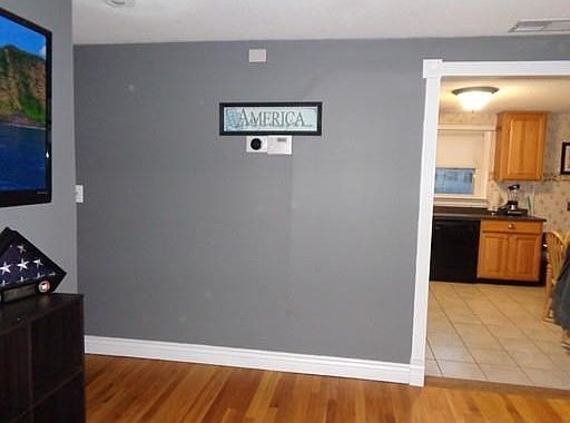 Updated open floor plan ranch for one-level living in a desired area of Chicopee. This home has great indoor and outdoor spaces. Newer bath and a pretty eat-in kitchen with ceramic flooring, and beautiful appliances arranged in a good workflow. The window looks out over an amazing, fully fenced back yard. It's larger than expected and has a sprinkler system. Relax there in the hot tub or inside with the cool central air. The partially finished basement is very open and has great storage along with separate laundry and utility rooms. There's plenty of off-street parking and the garage has an automatic opener. At the rear is an oversized mud room with even more possibilities. The bedroom closets are larger than expected. The master is a walk-in.This great home is finished off with low-maintenance vinyl siding, gutter guards, newer windows and roof.
