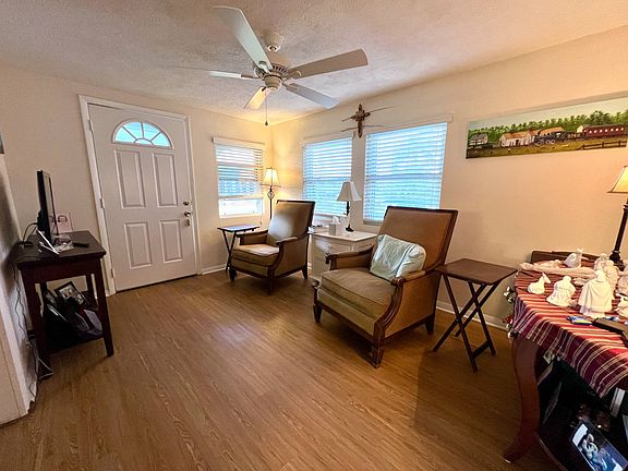 303 Colony Dr N, Colony Cove North Section, 55+ pet and golf cart friendly community. Homes are on leased land. Community application with credit & background check is required for approval. This quality 1978 home features 3 bedrooms and 2 bathrooms. Pack your bags! The home is fully turnkey furnished to spend your very first night in comfort! A four point insurance inspection will be provided to the buyers. There is a cabinet packed kitchen with two large pantries! There are nice appliances and a stainless steel double bowl sink located under the window looking out to the lanai. There are newer appliances with a ceramic cooktop range and a tile backsplash all around. It has solid laminate floors. The dining room is conveniently located next to the open kitchen with a built-in hutch & beautiful laminate floors. The open living area has a mirrored feature wall and quality laminate flooring. You will enjoy all the natural light from the full bank of windows that are shaded by the roof overhang. There are newer glass windows in the Florida Room (10 x 12) that flows off the living room with smooth laminate floor transition (no step down!). It has a private covered entrance from the front of the home. The third bedroom is located just off the Florida Room. Down the hallway Is the large carpeted primary bedroom suite with plenty of natural light & a ceiling fan. It also features a big lighted walk-in closet AND a make up vanity & mirror. The en-suite bath is roomy and has a vanity, sink & a walk-in shower with glass doors. There is a comfort height commode to make your master suite complete. The second bedroom has a double door closet, built in storage, a ceiling fan & carpet floors. There is full bath just around the corner. It has a shower/tub combo with glass doors, a comfort height commode plus vanity (makeup seat built in) & sink. The third bedroom is 10 x 15 with a walk-in closet, ceiling fan & laminate floors. It is currently used as a combination office with a fold out bed in the sofa. You will love this clean, move-in ready home! The home is offered fully turnkey furnished with quality furniture, window coverings, kitchenware & linens. The 2012 Goodman HVAC is maintained twice a year & keeps everything cool. There is a 2014 membrane roof commonly called a lifetime roof. The driveway has plenty of room for 2 vehicles. Under the carport is the big laundry shed (8 x 16) houses the washer and dryer (included), mop sink and lots of storage. The 12 x 16 entrance lanai continues to wrap around behind the shed for an overall length of 38 ft. The lanai has a custom acrylic window & screen enclosure built by Total Aluminum in 2019. The home is located within walking distance to Sunset Pool. It is on a nice sized lot with a palm tree and Florida foliage with a sprinkler system. The backyard very large & private with no homes immediately behind it. The owner has quarterly pest control services for a guaranteed bug free environment. Florida MH Sales, LLC cannot guarantee or warrant the accuracy of this information, measurements or condition of any property. Professional or personal inspection is encouraged. The buyer assumes full responsibility for obtaining all current rate of lot rent fees and pass-on costs. Lot rent is set by the community and is subject to change. The buyer is responsible for obtaining all rules, regulations, pet policies, etc., associated with the park from the community administrative office. Florida MH Sales, LLC is not responsible for quoting of fees or policies. Monthly lot rent of $932 includes: Lawn Care Water, Sewer & Trash Ad Valorem Taxes (For comparison, these 3 items are not always included in other communities) 24/7 Community Patrol Free Bus Trips to shopping & beach On Site Fire & Rescue, On-site Management & Maintenance 2 On-site Fitness Centers Upkeep of all common areas & amenities. Colony Cove Property management determines final lot rent