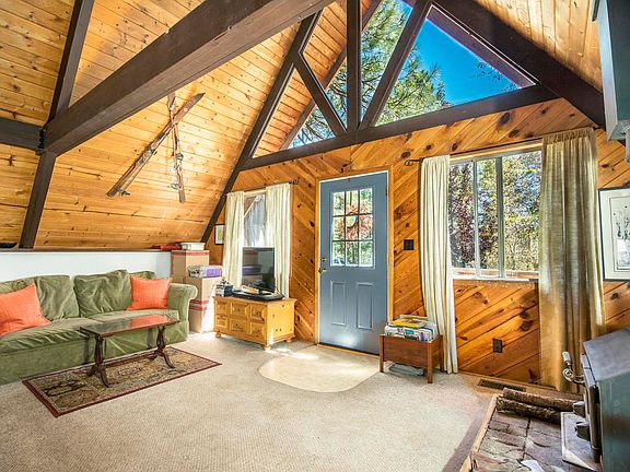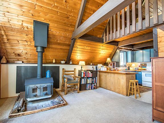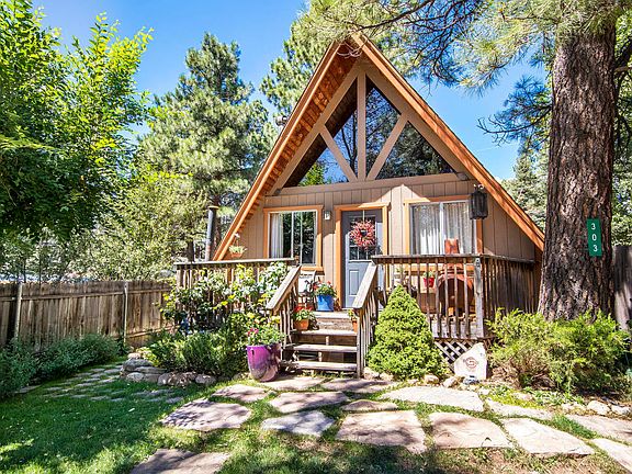 This adorable mountain cottage is the perfect place to call home in Mountainaire. This A-frame home welcomes you with a large fenced front yard and front deck. Walk inside to the great room, kitchen, and stairs to the loft above - which can be easily enclosed and is currently used as the Master bedroom. Vaulted tongue in groove ceilings and wood beams make this feel like a true mountain retreat. The living room has a wood burning stove that keeps everyone warm on a winter evening. Two large bedrooms and bathroom complete the main level. Walk out to the backyard to enjoy the large yard, including the insulated 120 SF shop with electricity and additional enclosed carport with lots of storage. All of this just one block from National Forest.