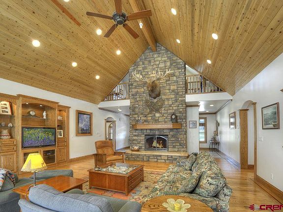 This 2-acre property has great curb appeal and is located right on Junction Creek, in a country setting yet minutes from historic downtown Durango. Its custom 3,893 SF home with 4 bedrooms, 3.5 baths, and large hobby room has an abundance of light and charm, and a maintenance-free exterior. The property offers irrigation from Junction Creek to water the mature landscaped yard featuring 3 ponds, a manmade creek, 2 waterfalls, and a combination of flowering fruit trees and perennial beds. The sound of the tumbling water from Junction Creek creates a most peaceful and soothing environment. This property is in a prime location, right across from Dalla Mountain Park for hiking and biking and within walking distance to Miller Middle School, Durango High School, Needham Elementary and Durango Recreation Center.