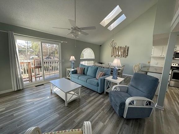 Inside the beautiful Kingston Plantation!! This spacious three-bedroom, two-bath townhome in Cumberland Terrace has an extended loft that serves as a third bedroom with a closet. Vaulted ceilings with skylights, a fireplace, a porch off the living room, and a large open floor plan with lots of light. The kitchen has solid surface countertops and stainless appliances. Both bedrooms are downstairs with a patio off of each room. The master bath has a walk-in shower. New windows and doors, HVAC and LTV flooring. New appliances in 2019. Sold fully furnished. A private pool for this community. The property is perfect for primary residence, second home or rental option. Amenities galore inside this gated community - a new oceanfront entertainment complex that includes 2 water parks and a large heated pool open year round. New Black Drum Brewing with 40 craft beers and a Carolina menu. Optional on-site spa and fitness center, tennis, pickle ball, and over 1/2 mile of sandy beaches. This is where you want to be!
