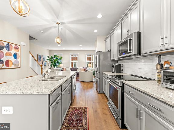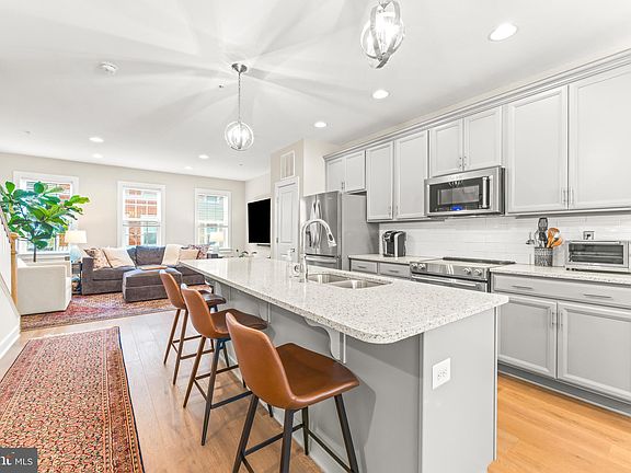 Stylish 4-Level Townhome in Towson Mews – Walkable, Modern & Made for Your Lifestyle Live at the center of it all—without the noise. This sleek and spacious 3-bedroom, 4-bath townhome in Towson Mews offers the perfect balance of urban energy and private retreat. Built in 2017 and tucked inside a quiet, tree-lined community, you’re just steps from Towson’s best coffee shops, restaurants, music, gyms, and nightlife—with a 93 Walk Score to prove it. Inside, you’ll love the modern design and thoughtful layout across 4 finished levels. The entry floor features a flex bedroom or home office with en-suite bath and walk-in closet, plus interior access to your private 2-car garage. Head upstairs to the main living area, where you’ll find high ceilings, oversized windows, and an open-concept layout perfect for entertaining. The kitchen is a total win—with quartz countertops, a massive 9-ft island, stainless steel appliances (including a new range and microwave with air fryer capability), 42” cabinets, and not one but two pantries. It opens right into the dining and living area, with direct access to a private deck. The third level includes a primary suite with a walk-in closet and spa-like bath (double vanity + oversized step-in shower), plus another spacious bedroom with its own full bath and another walk-in closet and laundry just down the hall. Up top, the fourth finished level offers major versatility—use it as a media room, creative studio, workout zone, or bonus guest space—and step out to the rooftop terrace for a vibe that’s all your own. Bonus: the top level has its own HVAC zone for year-round comfort. Other highlights include luxury vinyl plank flooring throughout, recessed lighting, tall ceilings, custom molding, energy-efficient features (HERS rated), and a covered front porch that opens to green space. There are also 2 years remaining on the Baltimore County Revitalization Property tax credit and coverage under the builder’s 10-year structural warranty. Whether you're commuting, hosting friends, or just enjoying everything downtown Towson has to offer—this home fits the way you live. Most furniture is for sale - prices negotiable.