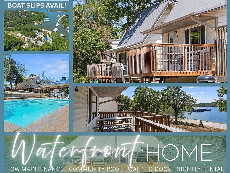 Fall in Love, Waterfront & View, Turn-Key @ Deep WaterThis fully furnished waterfront cabin is ready to deliver ALL the lake vibes! Tucked into a picture-perfect cove with sunset views, cool breezes, and a flat walk to the water, this is the ultimate basecamp for lazy days on the dock, epic boating adventures, and starlit nights by the grill. Whether you're here for family fun, weekend getaways, or the occasional cannonball contest, this cabin makes every day feel like vacation.Why You'll Love It:Front-row lakefront views of sparkling Table Rock Lake - year-round WOW factor!Flat & easy walk straight to the water - no crazy stairs or hills hereTwo optional 10x24 boat slips just steps away (add $65K each - owners only)Endless on-site fun: big pool for sunny dips, covered pavilion for BBQs, playground & shuffleboard for all ages, and miles of shoreline for exploringZero-fuss ownership: HOA handles water/sewer, trash, landscaping, common areas & roadsAdorable HGTV-style remodel: open floor plan with tongue & groove accents & warm lakehouse charmSoaring vaulted & beamed ceilings drenched in natural lightRoomy walk-in shower/bath on main levelChill loft/bunk area upstairs - the kids (or kids at heart) will love it!Fully stocked kitchenette: fridge, stove, microwave, utensils & linens - just bring snacksPartially covered deck with grill setup - perfect for burgers & sunset toastsBrand-new metal roof so you can focus on the fun, not the repairsNightly rental friendly if you want to make extra cash when you're not using itBonus: More cabins, duplexes, & a condo building available in Subdivison. Minutes from Kimberling City, Branson, & Silver Dollar City - smack dab in the middle of the rolling Ozark Hills where lake life never quits.