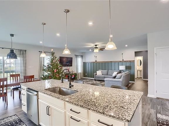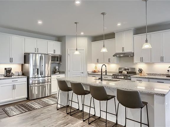 Striking 1yr young home has charming front porch. Enter the foyer and notice the open floorplan and modern flooring. The dining room has recessed lights, neutral tone and natural sunlight. The chef's kitchen boasts granite counters, abundant white cabinetry, under cabinet lighting, stainless steel appliances, an island with seating and pendant lights, and a casual dining area. Entertain in the family room featuring a custom accent wall, recessed lights, and bright windows. A den with a French door and a powder room complete the main level. The primary bedroom has 2 closets and a spa-like bath with dual sink vanity and an oversized shower. 3 guest rooms include ample storage, overhead lighting, and a modern bath with a tub/shower and dual sink vanity. A laundry room with bright window and custom cabinetry is located on the 2nd level. The finished lower level has a full bath, 19x15 storage room and abundant versatile space. An insulated garage and extended driveway provide ample parking.