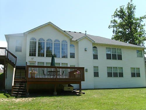 Fabulous atrium ranch w/ 4BR, 2.5 baths backing to trees & a creek. Magnificent view from spacious kitchen w/ 42" maple cabinets, island, huge pantry & built in TV area. Door off kitchen walks out to small deck w/ stairs leading to large deck. Beautiful arched windows highlight the atrium area. Wood foyer opens to huge dining room w/ columns, Living Room has vaulted ceiling, plant shelf & gas fireplace. Bedrooms 2 and 3 are nice sizes and are connected to a Jack and Jill bath w/ double vanity & separate shower area. Spacious master bedroom has atrium doors at the entrance. Master bath has corner whirlpool tub, separate shower and double bowl adult height vanity.. This 3 sided brick home also has a 4th br, family room w/ 2nd gas fireplace & lots of built in storage in the walkout basement. There is a 2 tiered deck for entertaining & enjoying quiet evenings. The oversized 2 car garage is finished w/ an attic pulldown and an insulated garage door. The driveway is also 3 car widths wide for additional parking. Square footage above grade is 2633 and below grade is 1044 for a total of 3677. Don't forget...Buy or Sell with me and use my moving truck to move for free!