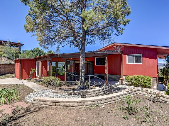 Huge double lot (0.57 acres total), privacy and unobstructed forever views of the entirety of Prescott's beautiful landscape. Take in sweeping views of Thumb Butte, Granite Mountain, the Granite Dells, San Francisco Peaks and more. Enjoy the city lights at night from this private, peaceful perch just minutes from downtown. This 4BR/3BA home has all the space you're looking for, at over 2500sqft including a heated/cooled Arizona room with double sliders out to the perfect entertaining patio. Newer HVAC unit (air conditioning and forced gas heat), concrete slab and slump block foundation --this is a house with great bones, waiting for you to make it your own.