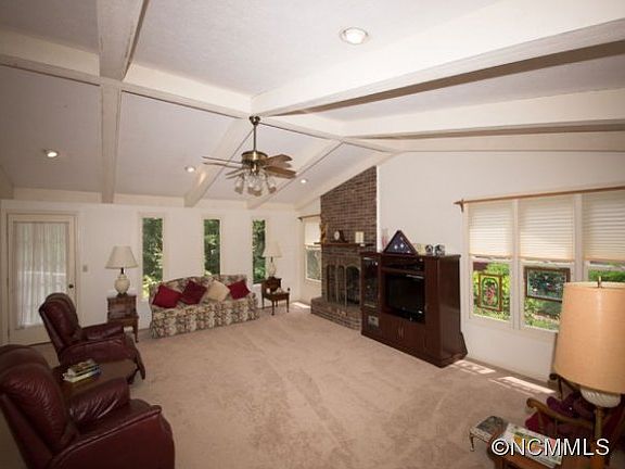 A Wonderful Home Nestled In The Woods w/the privacy that a Flat Rock address affords. One level living in this newly painted interior home. Large master & bath,2 guest br & guest ba. Beautiful Brick Fireplace w/gas log in the expansive great room w/wood beam ceiling. Welcoming front brick patio & private back & side decks. Over-sized double garage & workshop. Minutes To dining & entertaining venues in The Village. Part of the house was built 1959