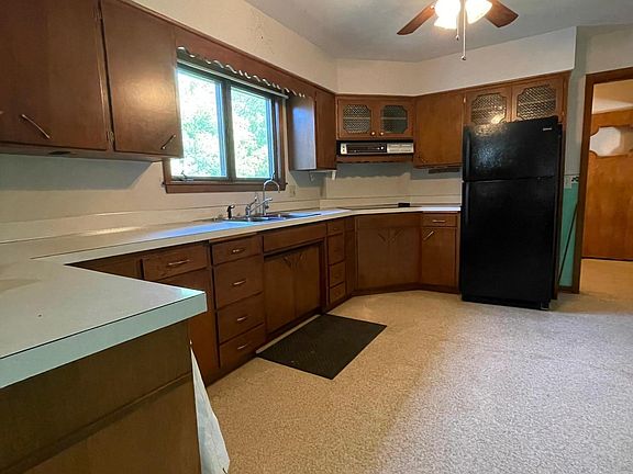 This ranch style home sits on a nice large lot and features all living facilities on the main floor. Step through the front door and you will see vaulted ceilings and wood burning fireplace as a focal point in the sunken living room. The kitchen is very spacious with a 3 season porch off of the informal dining area. The porch has a functioning indoor grill. Also on the main is a laundry/mud room, formal dining (or additional living room, full bath and 2 large bedrooms. The primary bedroom has a 1/2 bath attached. There are two entry points to the basement, one for the finished side and one for the utility side. The family room is very large and has a retro wet bar. 3/4 bath in the basement also houses a sauna!!