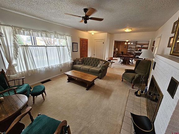 Welcome to this charming 3 bedroom, 2 bathroom home situated on a corner lot. Upon entering, you will be greeted with a spacious living room featuring a cozy fireplace, perfect for chilly nights. The open floor plan leads to the dining and additional living room area, creating a seamless flow and providing a great space for entertaining. Additional features of this property include a two-car garage, providing ample parking and storage. Located just a few blocks from the golf course, grocery store and park.