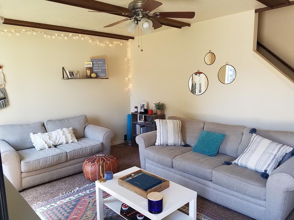 My wife and I are looking for someone to take over our lease. This is a large 2 bedroom/1 bath townhouse located off of 200 E just across from University Stadium 6 Movie Theater. It's a perfect place for anyone looking for a good sized apartment that is cheaper than most places in Logan. Our contract runs until 12/31/19. Our landlord is good at responding and getting things done. There is one covered and one uncovered parking spot. We have central A/C and heating. The kitchen comes equipped with a refrigerator, dish washer, stove, oven, garbage disposal, and plenty of cabinet space. There is a little nook for a washer and dryer with hookups. We have a washer and dryer that we are willing to sell to the next tenants for $25 each. There is one large bedroom and one medium sized bedroom. The bathroom has lots of storage space. The backyard is huge and has a good sized patio and a hose hookup. We have a small hand-built flower bed on the patio than we are willing to leave if anyone would like it. The neighbors are all super friendly! Please contact me through this post or text me at if interested.