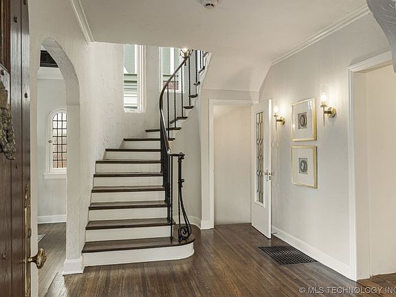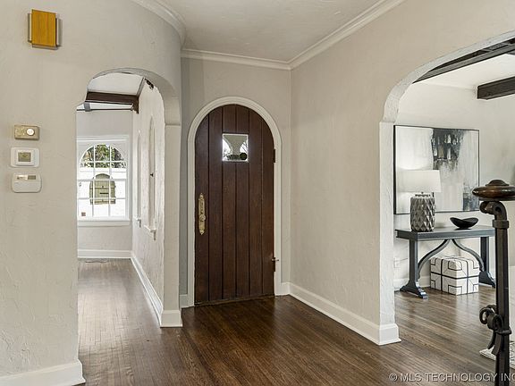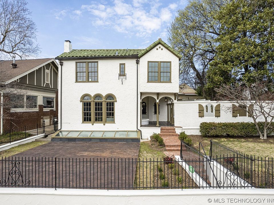 This Spanish style home truly blends indoors and out, encouraging maximum relaxation with elevated design and details. As a whole, this style of architecture is laid back and creates the feeling of always being on vacation. It warms you up and calms you down. Designed by German architect Otto Kubatzky for his wife Lorena, this rare 1924 home merges Spanish architecture with Art Deco features and flair. This home, and characteristic of the architectural style, is at one with its environment, with an outdoor courtyard and pool area that flow organically into the kitchen and living area. This dwelling boasts thick stuccoed walls, tiled roof, and enclosed courtyard that extends one’s living space. Enjoy exquisite original details such as beamed ceilings with delicate scrollwork, art deco light fixtures, stained glass windows, arched doorways, saltillo tile floors, and other modern touches and upgrades to fit the original feel and character of the home. Whenever you want to leave your personal Mediterranean resort, this home is in the heart of Maple Ridge only one block from the Gathering Place and minutes from Brookside, Riverside, Philbrook, Woodward Park, and Utica Square.