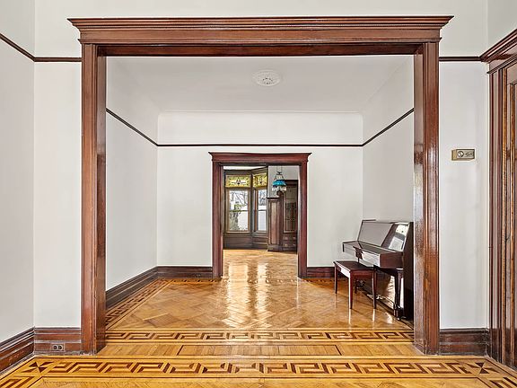 Prime Kensington Limestone with parking! Lovingly maintained two family currently used as a single family is awaiting your modern touches. Amazing bones to work with as several original details have been kept and cared for. Parquet floors throughout are in excellent condition. Light pours into the living room with stained glass windows and a western exposure while the dining area is graced with an eastern exposure, additional stain glass windows, coffered ceilings, paneled wood walls and the original built-ins. Around the corner, the kitchen( circa 2004) has three windows. Expand on this footprint by building an extension or opening the kitchen are to the back entrance. The eastern facing garden featured old growth hydrangeas and roses. The basement has a full and updated bathroom and plenty of storage. Renovated this space for additional living square footage. The second floor has a large skylight in the hallway, a full bath and four generous bedrooms. Close to shopping, dining, transportation and cafes on Church Avenue and close to Windsor Terrace, this residence offers easy, convenient city living on a very neighborly block. An opportunity not to be missed!