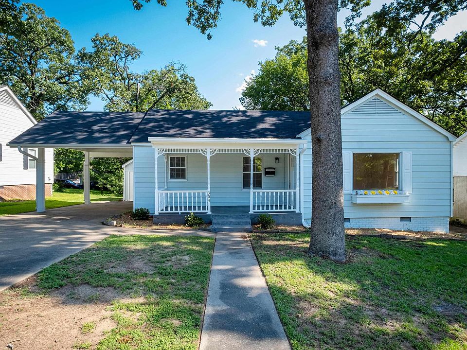 Charming, Craftsman-style home in the Park Hill Historic District that offers tons of improvements while still maintaining the character of the neighborhood. The spacious living room boasts original hardwoods that extend into the multiple dining areas and guest bedroom. Updated kitchen features new Quartz countertops w/ breakfast bar and stainless steel appliances. Two large bedrooms are separate and offer tons of natural light. Primary bedroom features en-suite bath. New rear deck provides ample space for entertaining and overlooks flat backyard. Other improvements completed in 2024 include new roof, HVAC (package unit), electrical service+panel, numerous light/plumbing fixtures, interior+exterior paint throughout, flooring in kitchen/bathrooms/primary bed and more!