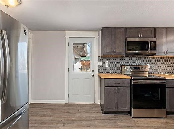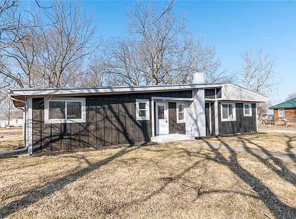 EVERYTHING IS NEW! Beautiful completely remodeled 3 bed 1 bath ranch home. This one level living, and open floor plan sits on 3 treed lots and has so much to offer. Stainless steel appliances, new flooring, electrical, plumbing, HVAC, roof, windows, lighting, and new concrete garage floor. Butcher block countertops are an added bonus that sets off the gorgeous kitchen. Large bedrooms and tiled bath/shower comb. The metal roof, and the cedar siding makes this home move in ready and very low maintenance. Sit out back and enjoy small town living from the newly built gazebo. Must see to appreciate this beautifully done new remodel with a 45-minute commute to Kansas City. 2022-04-29