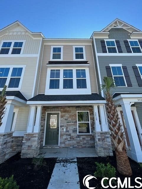 Under contract. Welcome to Forest Pines, a brand new townhome community in Myrtle Beach consisting of only 84 homes. With access to the Carolina Forest school district, this quaint neighborhood with feature an on-site pool and clubhouse along with exterior maintenance covered, and you're only 15 minutes from the beach! This home is our 3-story Hepburn plan, which includes 3 bedrooms, 3.5 bathrooms, a recreation room, a ground floor rear patio, and 2nd level deck off the kitchen space. With stunning craftsman-style exteriors, our homes at Forest Pines offer tremendous value by including upscale, modern design finishes like vinyl plank flooring, quartz or granite tops, stainless kitchen appliances + the refrigerator, ceramic tile flooring in the bathrooms and laundry room, tile backsplash, tile showers, and much more! Pictures shown are for illustrative purposes only, and represent previously built homes. Schedule an on-site appointment TODAY for your chance to secure introductory pricing and your favorite homesite selection.