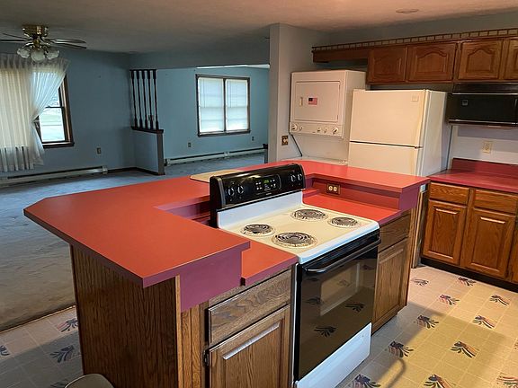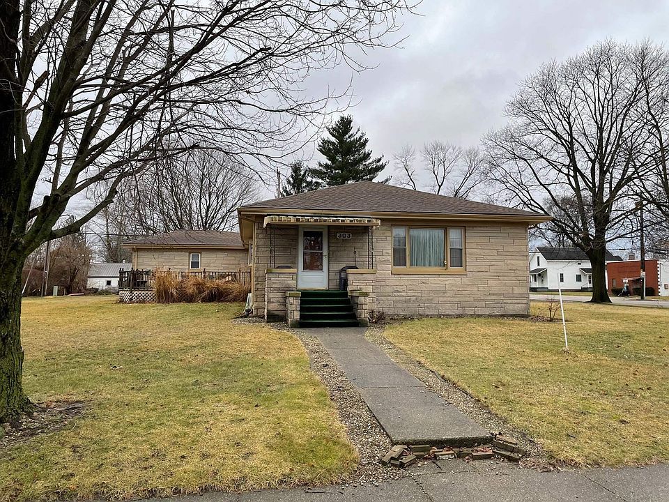 Very nice 3 bd 1 bath, open concept Bedford stone house with a large living room, dining room and kitchen, located on Main St. in Kewanna. Large corner lot.